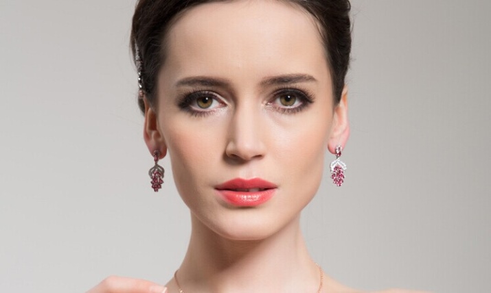 Earrings with ruby can not be called a universal jewelry that can be chosen by all girls without exception. Therefore, some fashionistas still have to abandon these decorations.