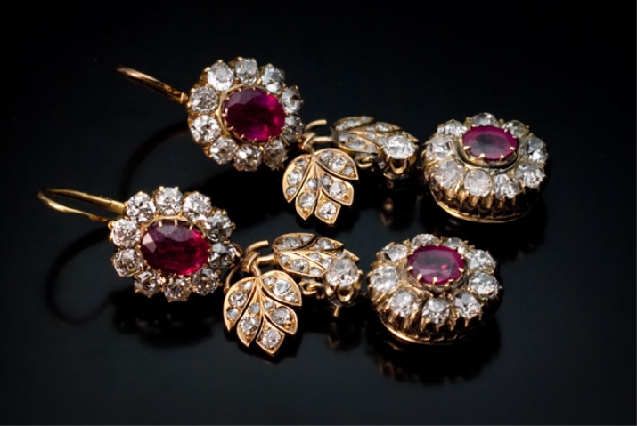 The combination of a diamond and a ruby in one product is a luxury that few people have access to. These two minerals are approximately in the same price category, which makes such jewelry insanely expensive. Jewelers often have a bright ruby of a dark shade in the center, and a placer of small diamonds is located around.