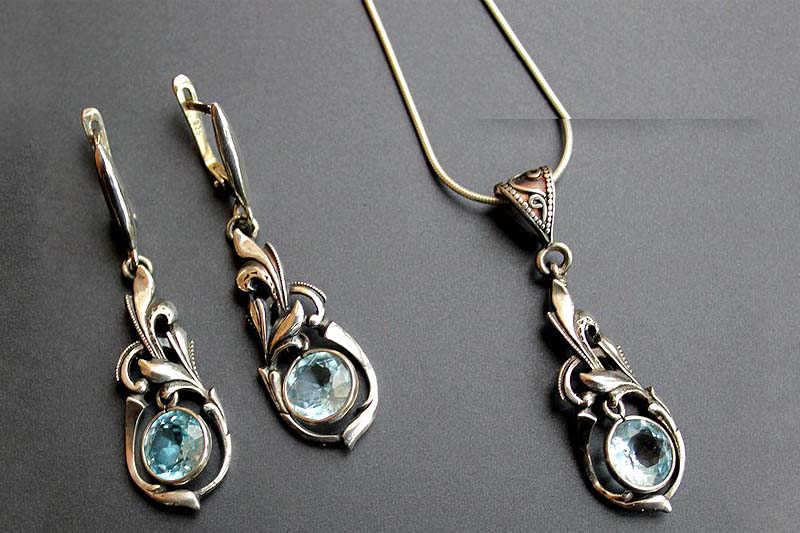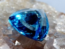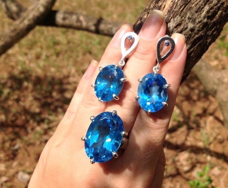 For the blue stone is used a special cut, which made it very spectacular and extremely popular. Today you can find jewelry in which this topaz has a gray or green tint.