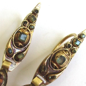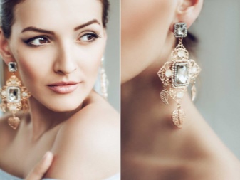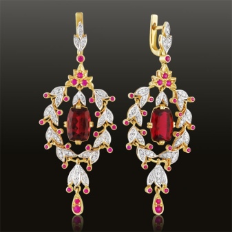 One of the most sophisticated and luxurious are the chandelier earrings. In such decorations, stones can be placed in the artful interweaving of metal lines. Such products are most often worn with feminine evening wear.
