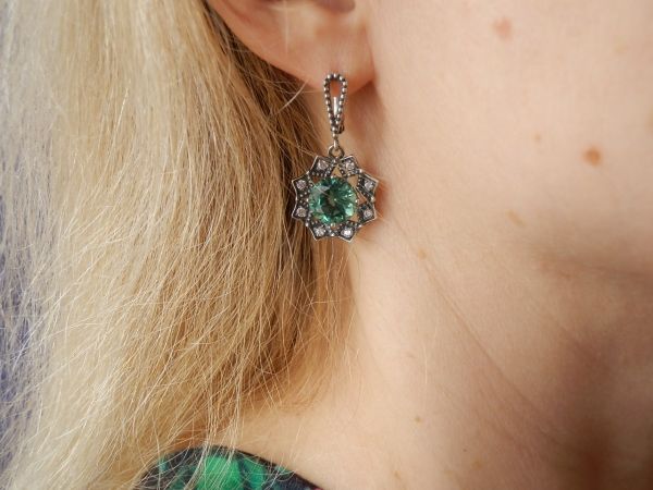 As a rule, classic models are equipped with a reliable English clasp. They are not large and easy to combine with many women's clothing sets.Such earrings are most often decorated with small, geometric-cut topaz.