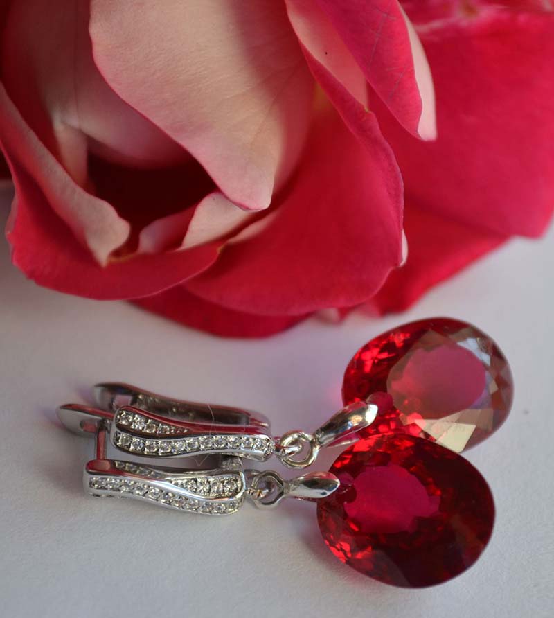 Earrings with red topaz will be the perfect choice of sensual and passionate nature. This stone is considered a love amulet, which is able to help in the search for its second half or to refresh faded feelings.