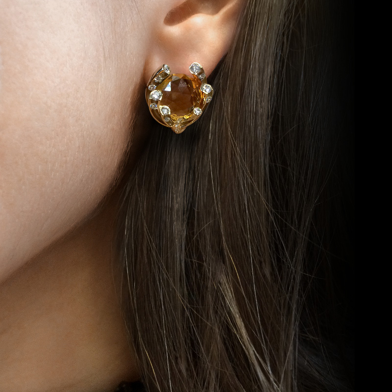 The strongest and most full of energy is considered yellow topaz. You can pick up interesting earrings with such a pebble in various shades. These can be jewelery with light golden or brown topaz.