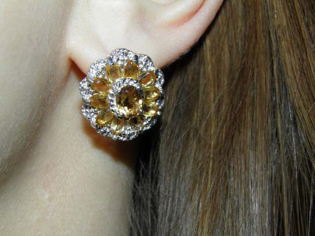 No lady can resist the golden earrings with shining topazes. Such jewelry will not be combined with all sets of clothes.
