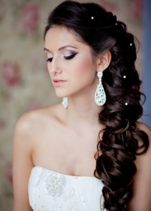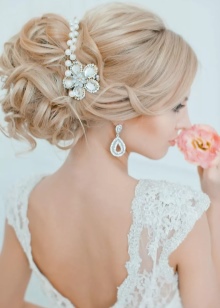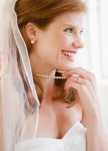 Hairstyle is one of the decisive elements when choosing wedding jewelry, especially earrings. If on a solemn day you will be with a high hairstyle, then when choosing an earring, you should consider the shape of the face. If you prefer loose hair, then long models are a good choice. Today in the trend earrings in the form of strings with a massive element at the bottom.