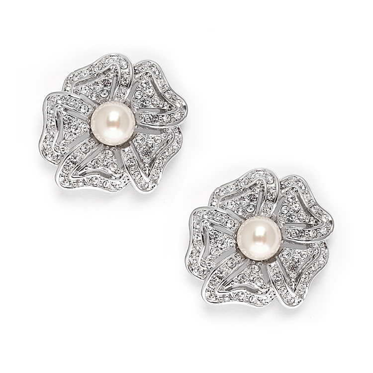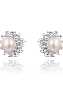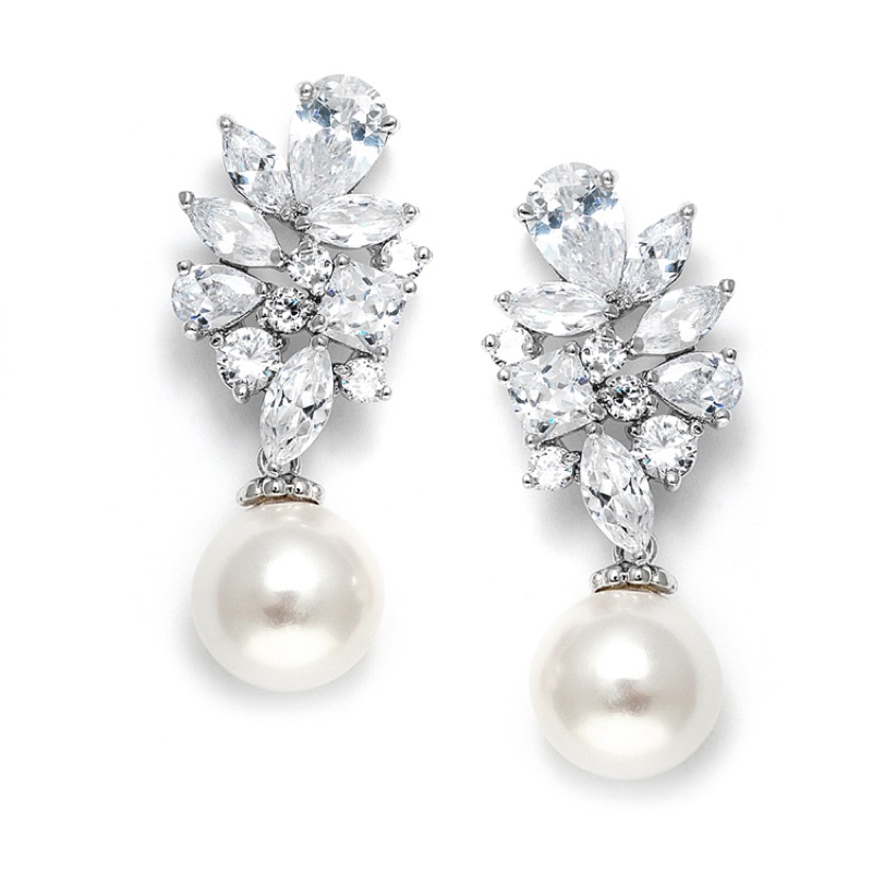 Earrings with pearl decor are presented not only in a simple design. Effectively and attractively models look like clusters. They can be complemented with diamonds or rhinestones. Metal elements on floral themes are also often used by designers to decorate wedding earrings.