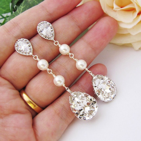 Often brides prefer the classic - exquisite earrings with pearls. Long models never go out of fashion. Every season designers offer new options.