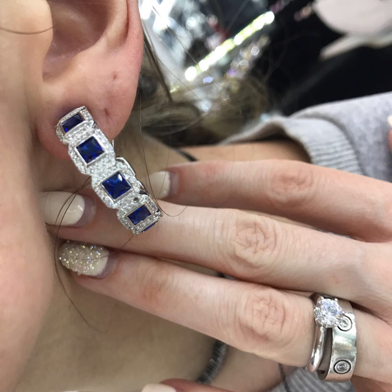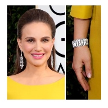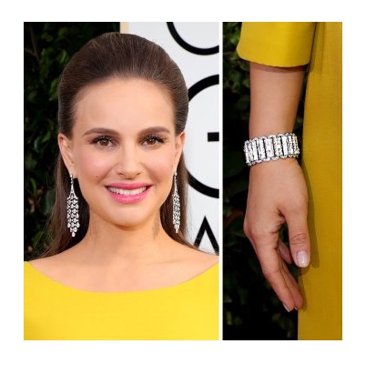 - A similar combination would be appropriate if your earrings are made of silver or platinum and have elongated pendants, as in the dress of Natalie Portman;