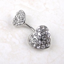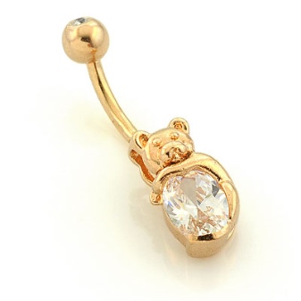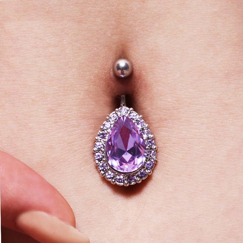 You can choose an earring with one large monochromatic stone that will fill the navel space. Original jewelry with symbols or animals.