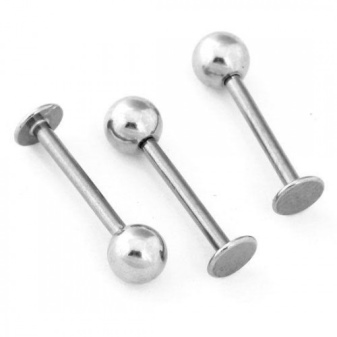 The shape is similar to the bar, only on one side it has a disc. There is also a microlabret - with a thinner base. This jewelry can be used not only for piercing the navel, but also for the nose, eyebrows, lips or ears.