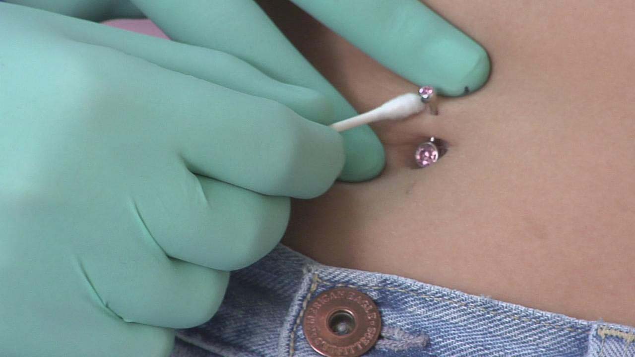 A puncture is made a little higher than the navel on average by half a centimeter. After that, the decoration is immediately passed through. How to insert a ring - an expert will show. After six months it is not difficult to replace it yourself. It is enough to wipe the jewel and skin with alcohol.