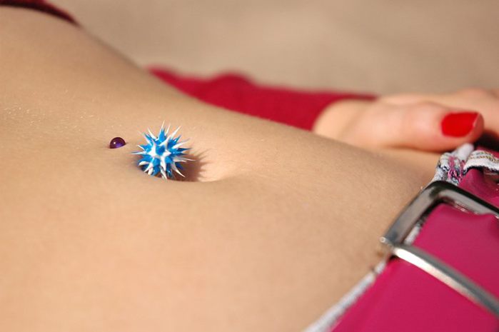 Before you go to the master for the operation, you must pre-select the appropriate decoration. It is his specialist who inserts it into the puncture, and it will remain on the body until the wound heals completely. The navel is a very tender and sensitive place that heals for a long time. The discomfort of the manipulation can be maintained for up to six months. Therefore, it is especially important to pay attention to your first jewel.