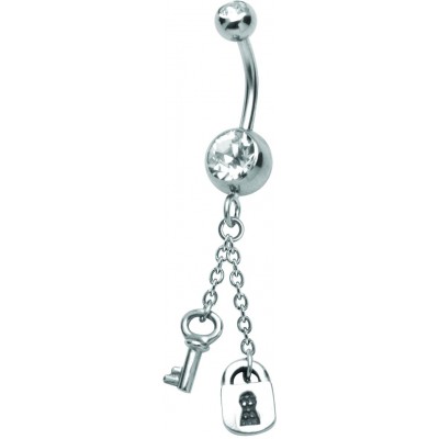 Small stones on the "bananas" are not visible under the clothes. Therefore, you should not give up the navel decor only because of the strict dress code at work. But you can choose a decoration with the original pendant and supplement your summer look while relaxing.