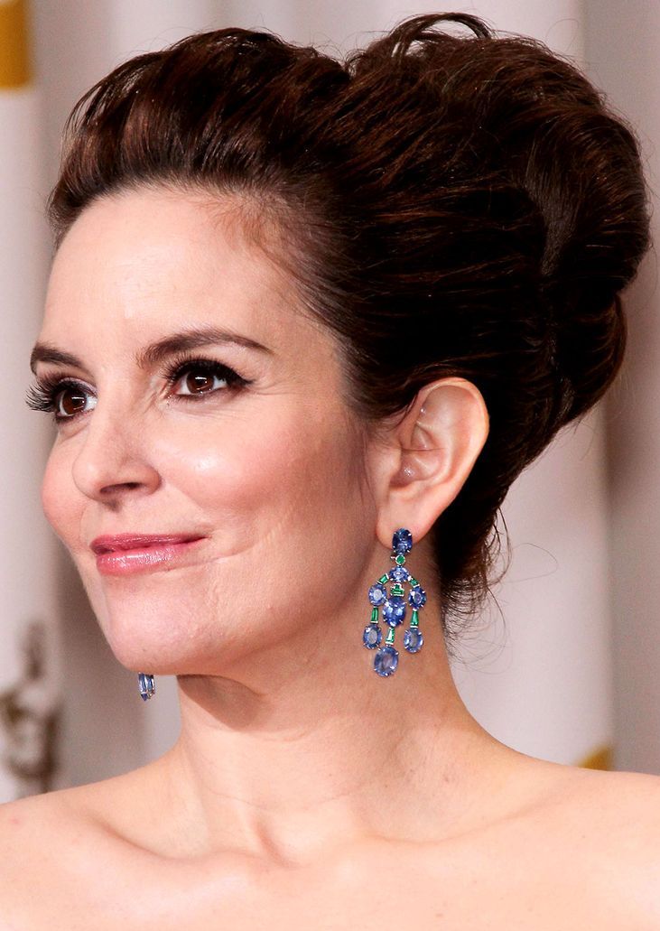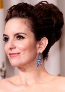 - For the output attire, you can choose the original pendants of various shapes that will match the eye color makeup. They are able to perfectly complement the strict dress with a sexy neckline. Such an ensemble for the exit chose Jennifer Aniston