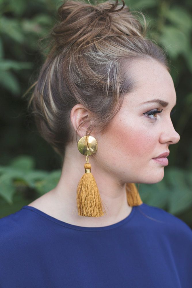 Beautiful earrings will look great with hairstyles that slightly open the earlobes. Owners of popular haircut squares can pick up playful earrings consisting of a chain and a ball.
