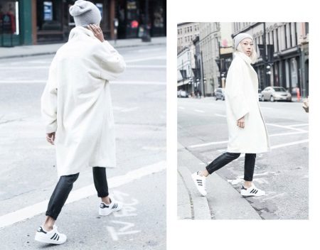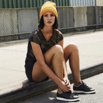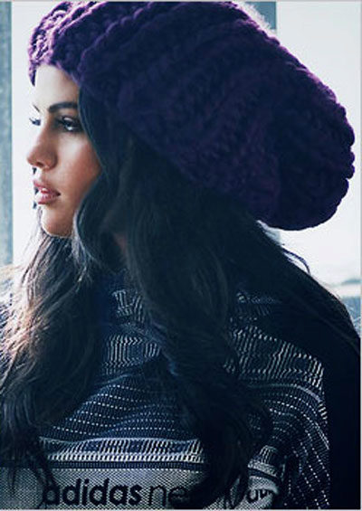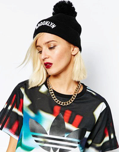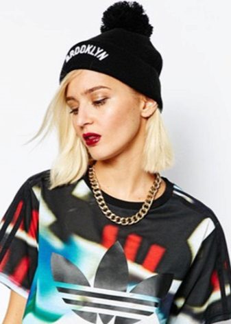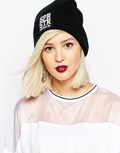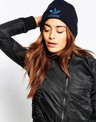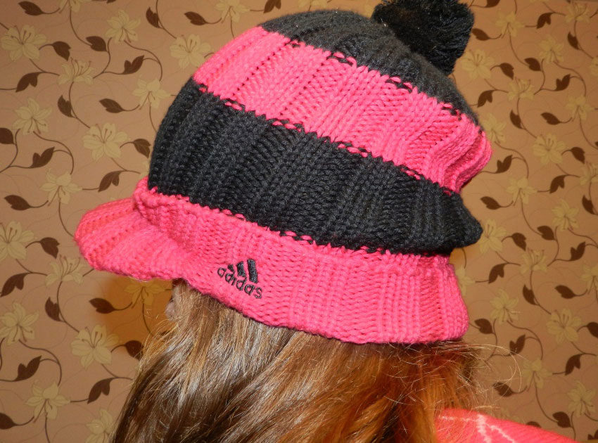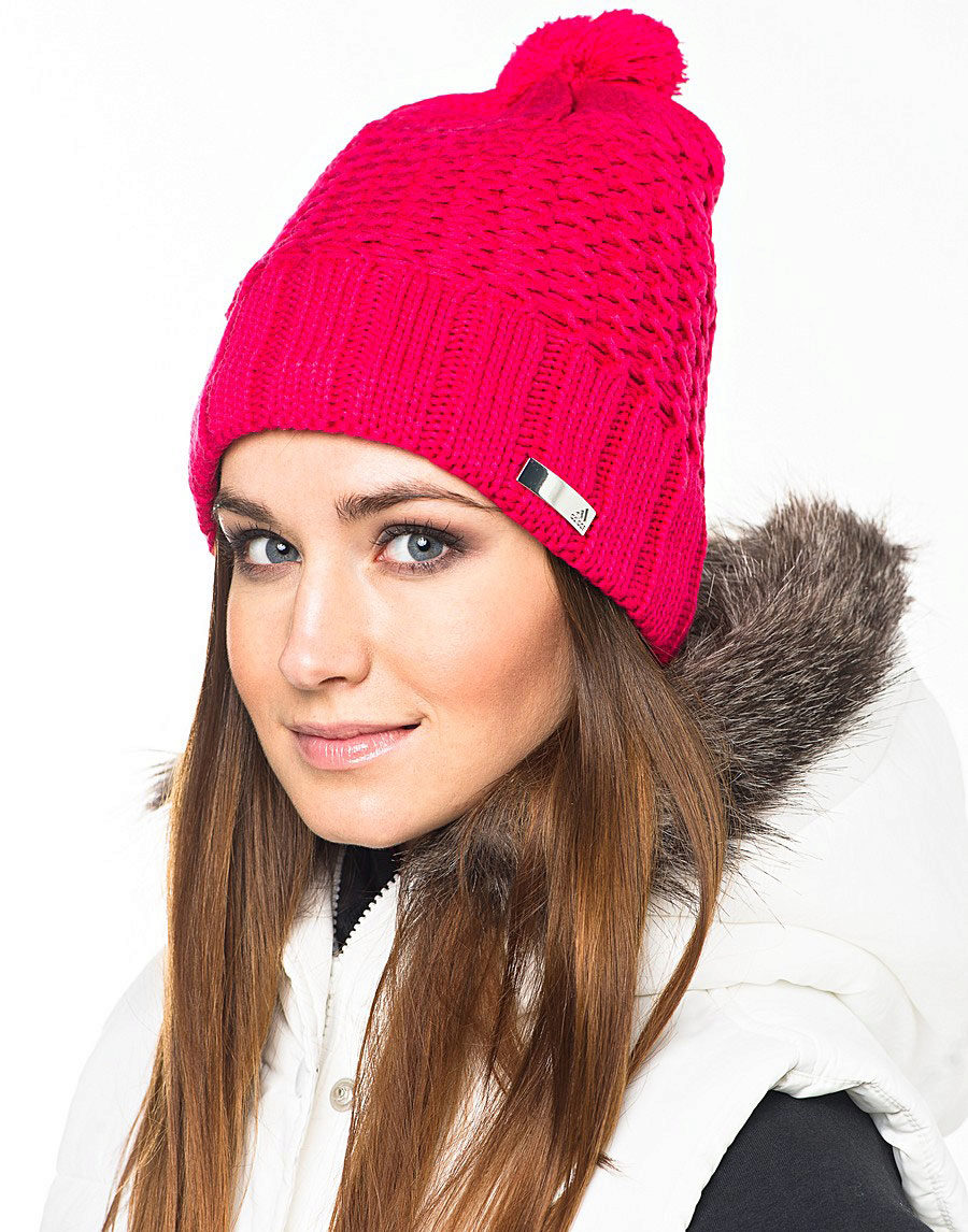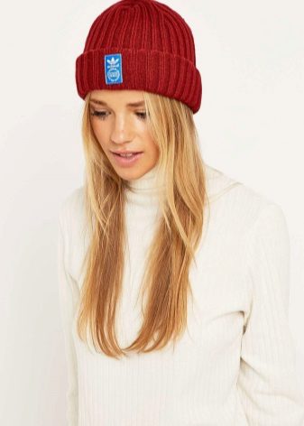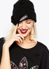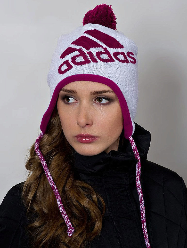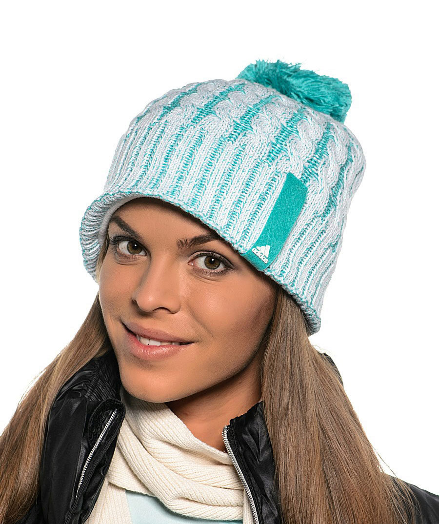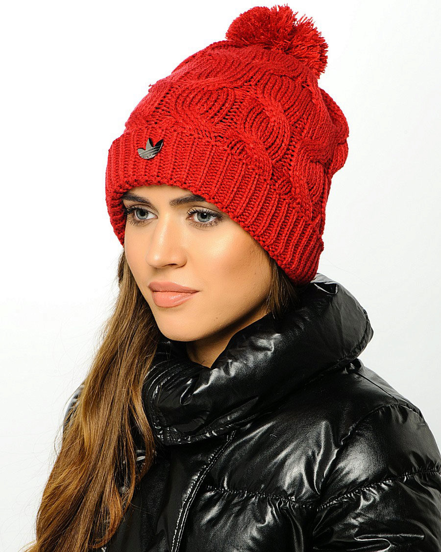Adidas hats look great with classic outerwear, for example, with an elegant coat. The models with volumetric braids look impressive. A knitted product may be slightly lowered at the back, but in any case it should leave the eyebrows open. If you want to make the image even more gentle, let the hair out. A volumetric hat of such an texture is best suited for stately girls, while tiny young ladies should choose a model of fine-knit, tight-fitting head.