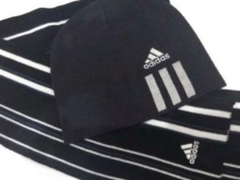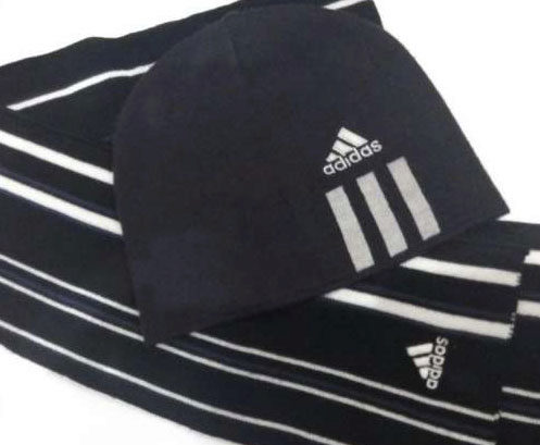With a practical Adidas hat, you can make a set, complementing it with a scarf of the same brand of the same color and texture. The purpose of a sports scarf is, of course, to protect the neck and throat (they need to be especially protected when active in sports on the street), it can also be an attribute of a fan (a fan scarf).