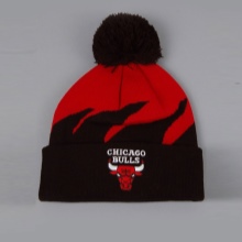 The original male version of the headdress for training on the street. This model demonstrates that a pom-pom can be an attribute not only of women's hats. The color solution of the product is presented in the form of alternating wide green and white stripes. The thing is decorated with a wide elastic band and a large brand name. The style of the cap opens the high forehead of the correct form and fits the shape of the face of the young man.