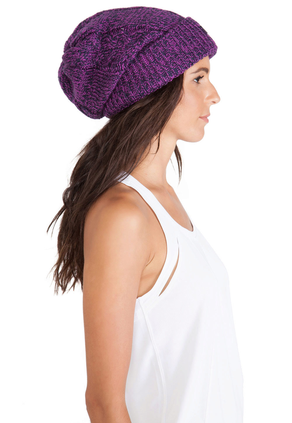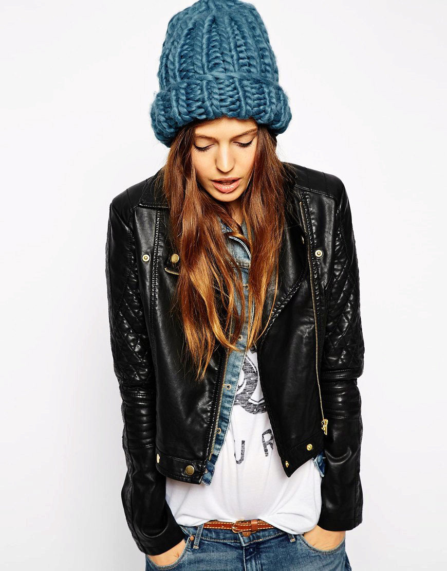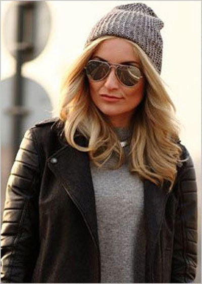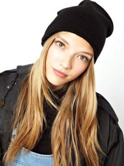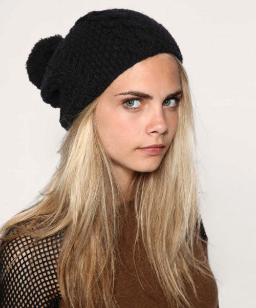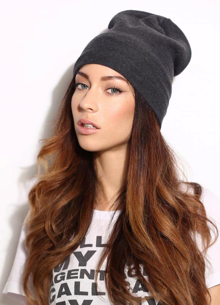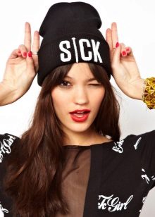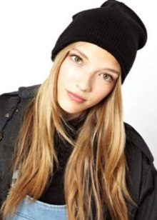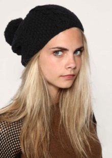 It should be noted that fashionable women's knitted sports hats are worn in different ways: they lower them slightly behind or slightly shift to one side, each time creating a new image. For a romantic look, you can let out long hair from under the caps.