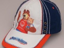 Many hats are decorated with emblems depicting little animals and cartoon characters (for example, Mickey Mouse or squirrel).