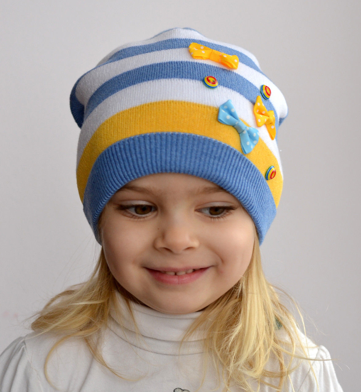 Ukrainian brand products designed mainly for the spring and autumn season, but some models (usually for children) are very warm - suitable for Russian frosts. Headgear made mostly of natural cotton, which does not provoke allergic reactions, with the addition of wool or acrylic. The greater the percentage of these warm threads, the correspondingly the cap is warmer. In addition, the composition of products may include elastic synthetic fibers.