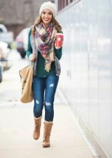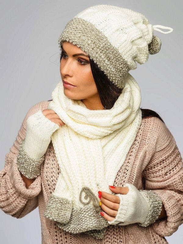 In addition to outerwear, things are important companions, because in the winter, in addition to hats, people wear scarves and gloves. Textured knitted hats can easily be combined with similar scarves and snudami, but for smaller knit hats it is better to choose thinner items. Not infrequently, a scarf-snud can be worn over a hat if it does not have pompons.