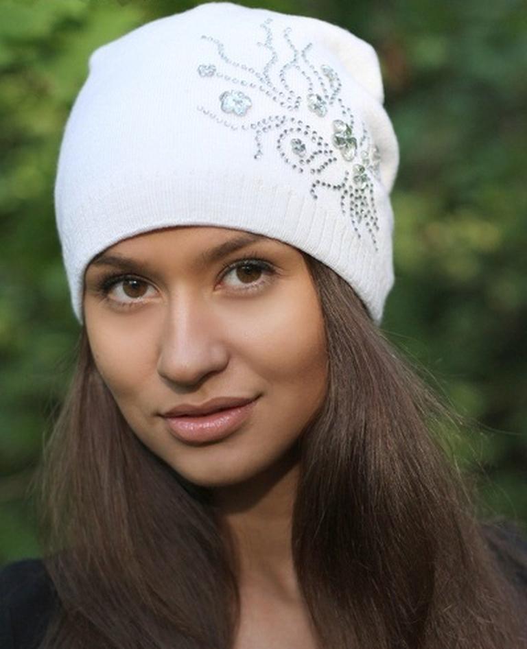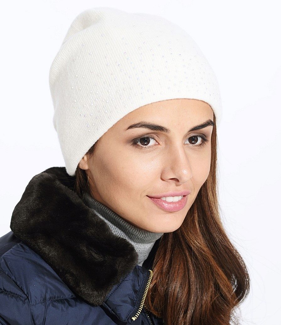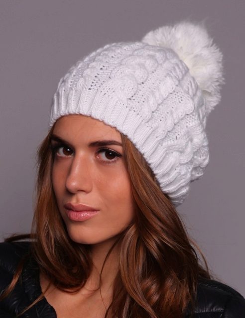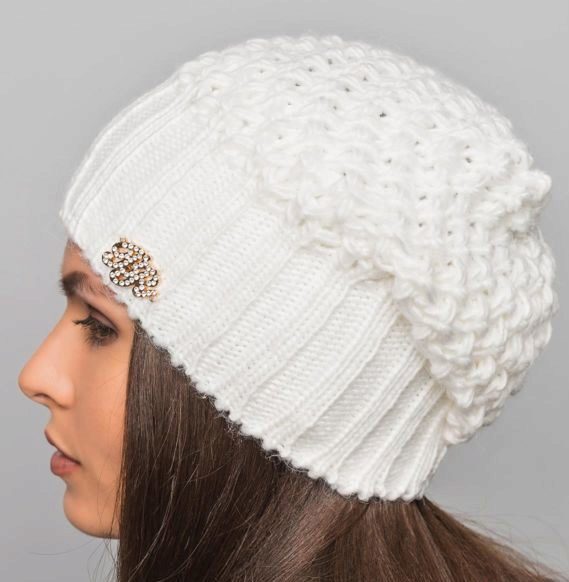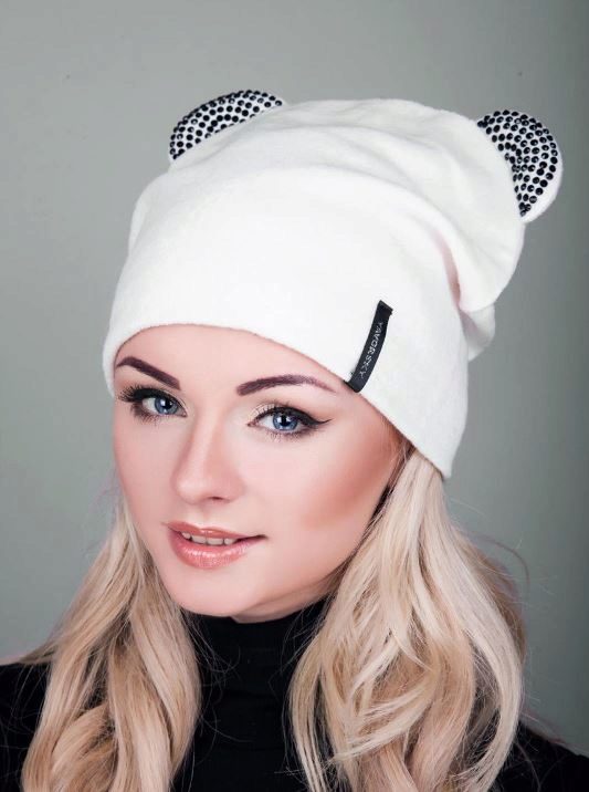 White color has a lot of symbolic meaning, ranging from light and purity, to well-being. Ivory, white ghost, snow, smoky, seashell - this is just a short list of shades of color, which is basic and universal in fashion. He could not ignore the headgear, especially winter, because This hat will look amazing on a snowy day.