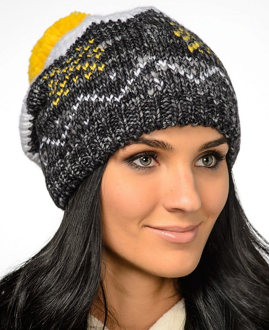 Knitted hats differ in density and width of the selected yarn., therefore, they can be the lightest openwork or large ones, like Helsinki Hat, or fluffy, if mohair or fur yarn is used. Knitting technology is also important, because drawing on the finished thing depends on it. Popular patterns are Arana, braids, pearl, fish scales.