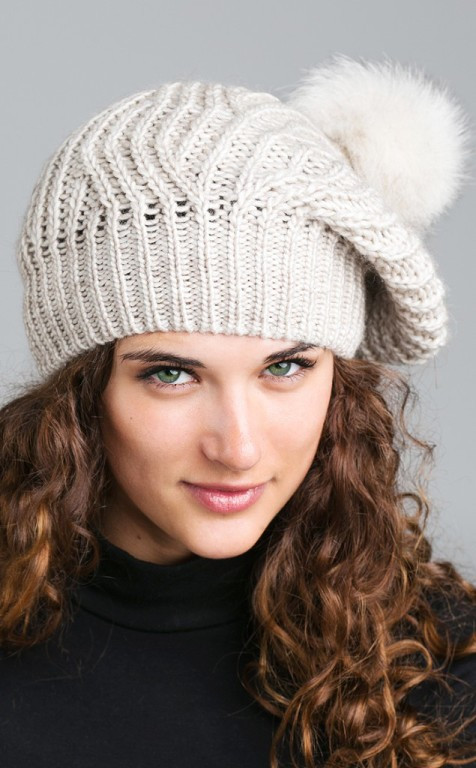It is better to wear a woolen cap with a fur coat. Large pompon looks advantageous with a mink coat.