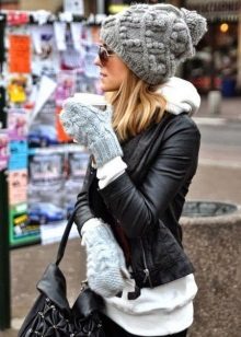 The hat goes well with a scarf, with a snood, and they can be of one tone, or of a different color and even texture. Of course, we should not forget about gloves, mittens, because in the winter there is nowhere without them, and if the bini is knitted, then it is better for them to be just like that.