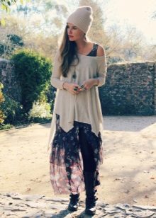 The owners of the bini love to combine what seems to be not combined, but in the end it looks very original. For example, a hat with a chiffon or silk blouse, a classic wool coat, short shorts.