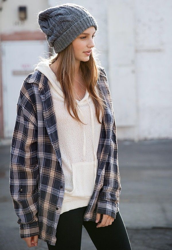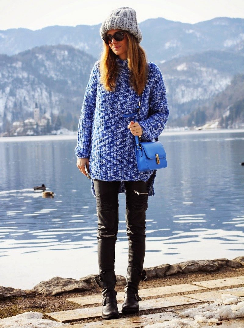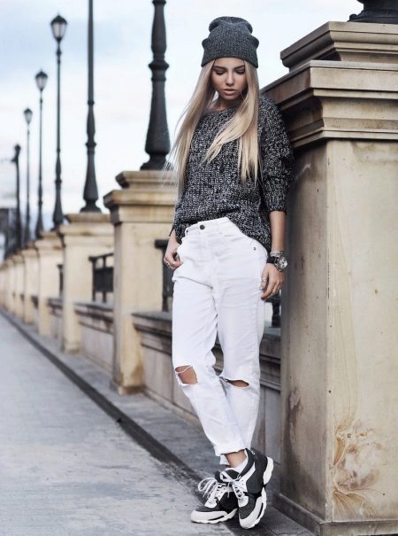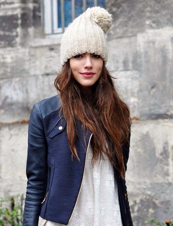 Large-knit bini will suit down jackets, parks, leather jackets, and in warmer times of the year - cardigans, sweaters, loose tunics and flying shirts. Thin knit hats look good with sweatshirts, blazers, cardigans, tight jeans and trousers.