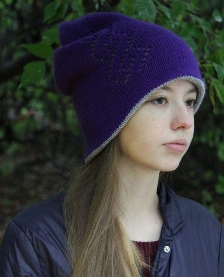 Besides the fact that there are prints and patterns (stripes, patterns, peas) on beanie caps, knitted ones can be made in various technologies. Depending on the chosen pattern, this or that pattern appears on the heading during knitting.
