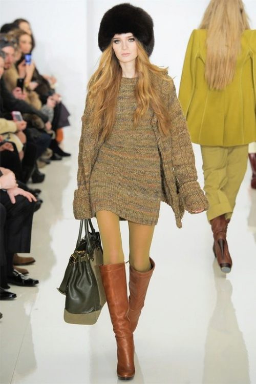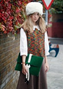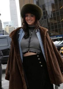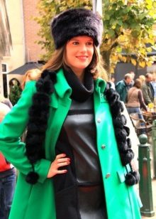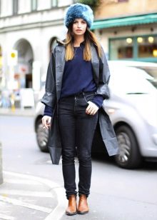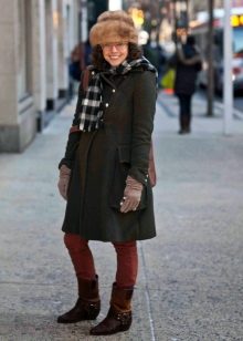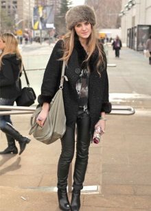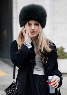 Thanks to the fur part of the boyar becomes the decoration of any image. That is why the bow, composed with such a hat, does not require the intervention of other active accessories, things companions (scarves, gloves), bags. All of them should have a simple and unobtrusive design to complement such a distinctive hat, and not compete with it, making the appearance tasteless.