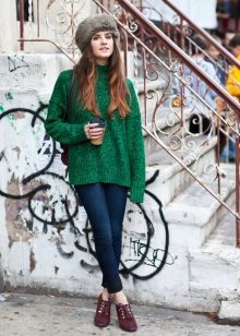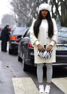 Pay special attention to shoes, because besides the outerwear, it is one of the most visible attributes of a winter street image. With short products, you can safely wear boots and high boots with heels, half boots. Deliberately coarse and simple shoes should not be combined with elegant fluffy hats. For lovers of excitement - sneakers complete with a free coat and a boyarka cap.