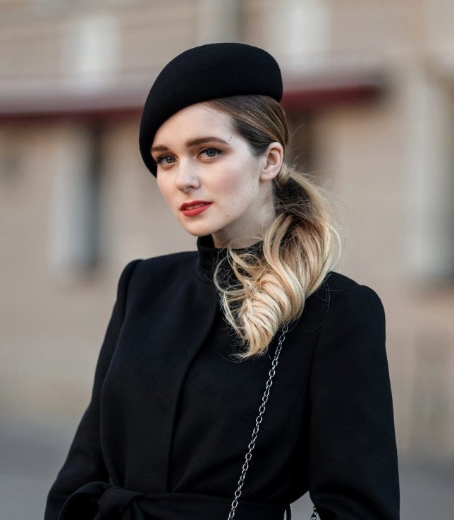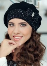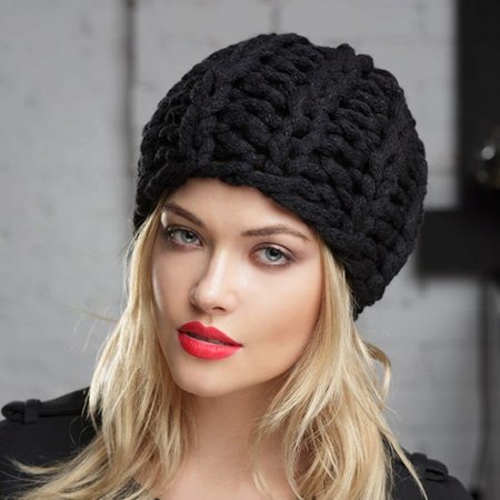 Another unique variation of the black cap. This headdress combines street fashion and femininity, it is easy to combine it with any things from an already established wardrobe, creating both an elegant and casual look. A woman who has worn such a hat, immediately becomes mysterious and sexy, inaccessible and truly exciting.