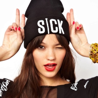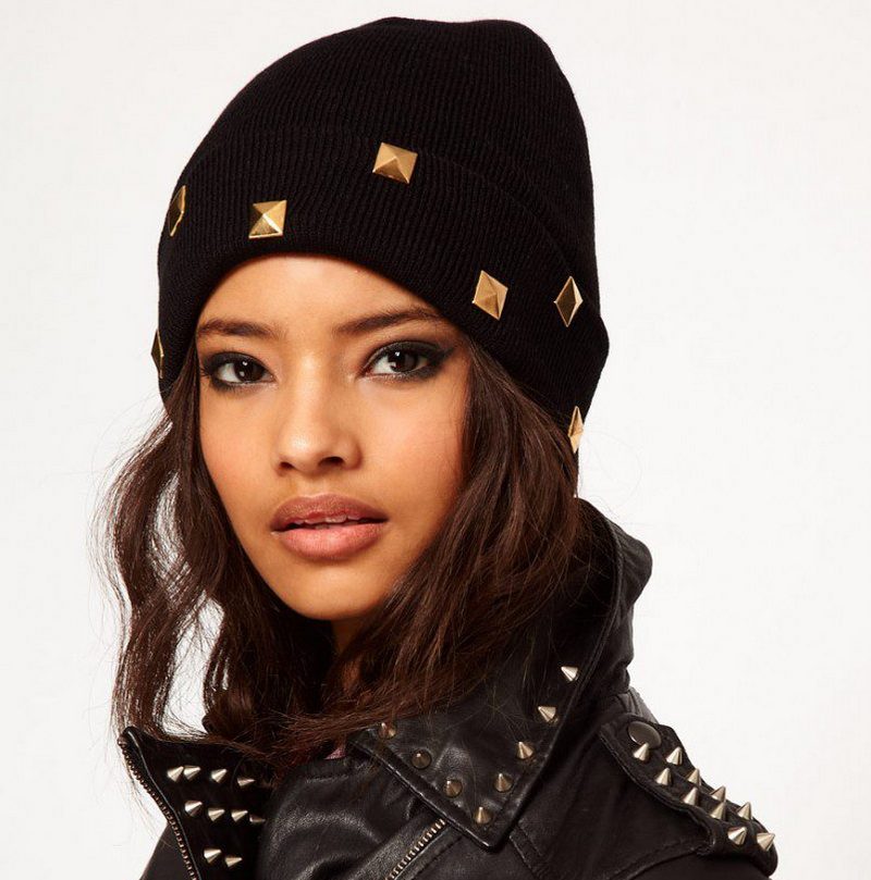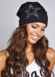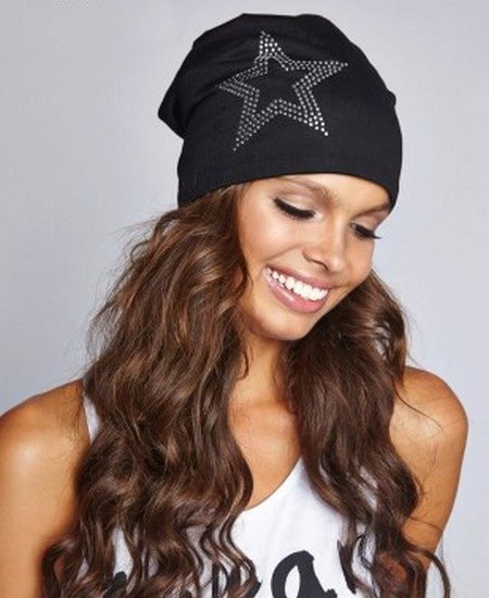 To date, you can find black hats from virtually any material. The most fashionable - knitted, both ordinary girls and stars wear them around the clock, at any time of the year - with T-shirts, denim vests or leather jackets.