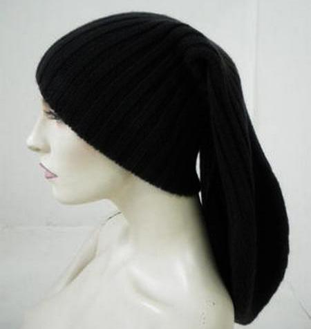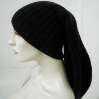 Initially it was a headdress for sleeping, but the designers with a confident gesture brought the cap-cap to the streets of cities. Especially effective are the long black models that fall down almost to the shoulder blades. This piece of wardrobe for bold ladies who love extravagant decisions.