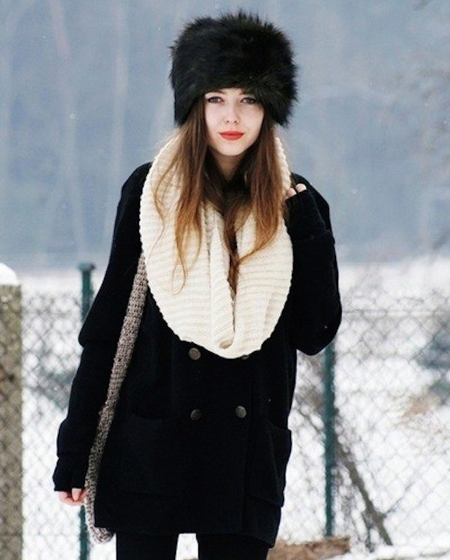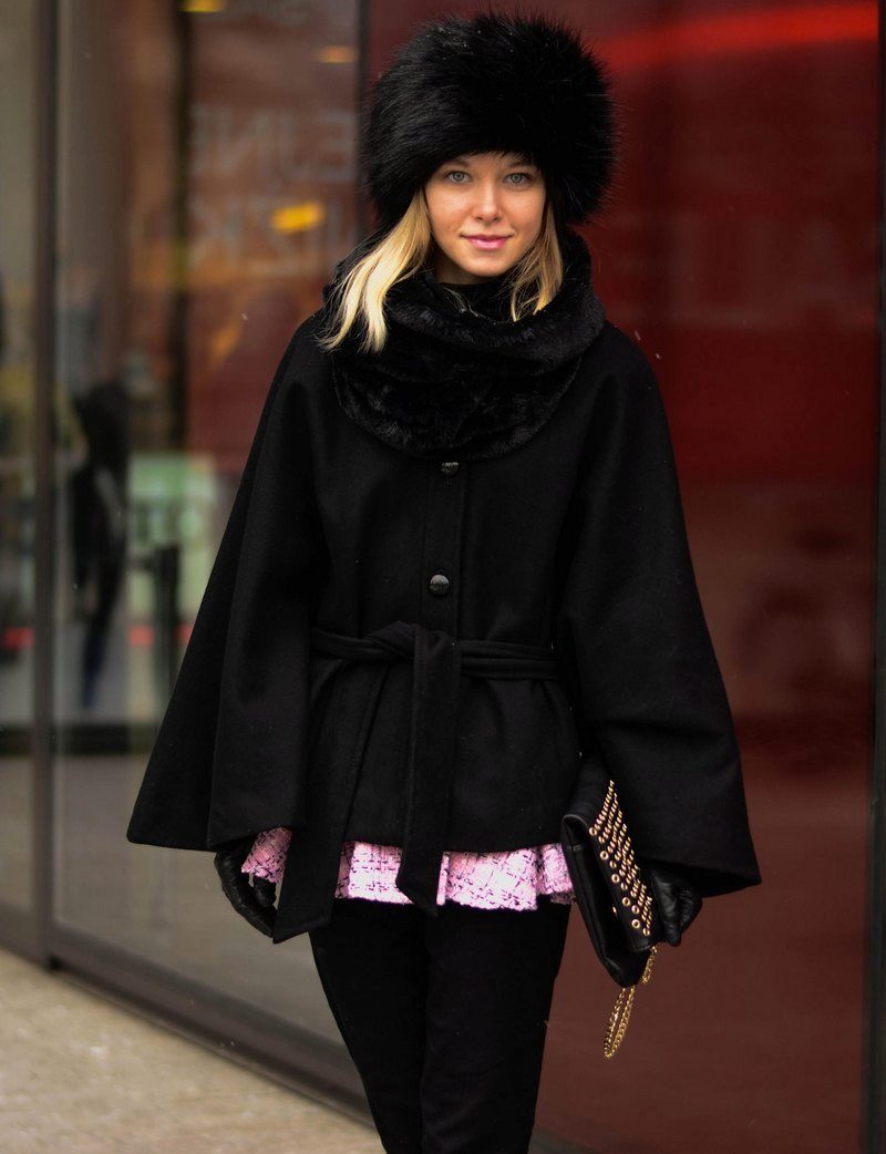 At the same time, the black cap looks wonderful with light-colored fur coats and down-padded coats - cream, beige, light gray. Of course, a black hat is ideal for black outerwear, but if you want to wear brighter colors, then there can be lots of combinations.
