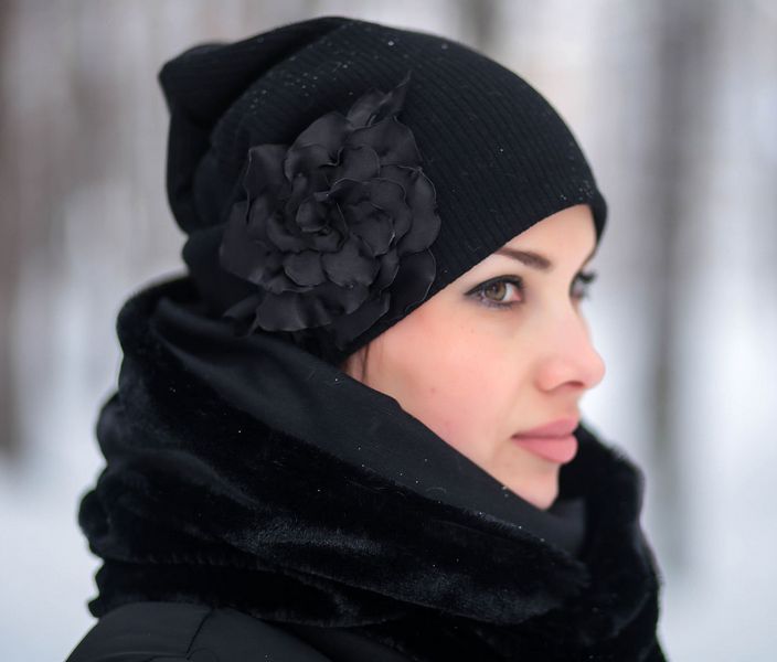 This model in black is literally the basic detail of any women's wardrobe, which can be worn with both outerwear and casual style jacket, sports sweatshirt or leather jacket. Beanie is a loose cap that falls behind the folds. You can wear it in different ways - deeply pulled over the forehead or down to the base of the bangs.