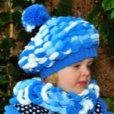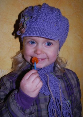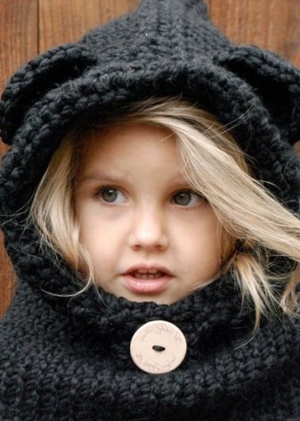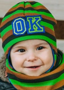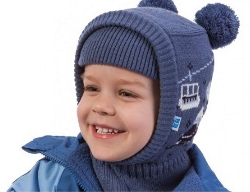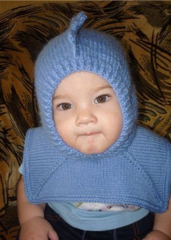 Helmet. A model that combines a hat and a scarf at the same time. They are very convenient for almost independent children who attend kindergarten and dress themselves. In this hat, you can not worry about the fact that the child will forget to wear a scarf or somehow knit it incorrectly. In such a cap, providing a snug fit to the head and closed throat, you can not worry about the health of the baby. However, it should be mentioned that the children themselves do not always like this model of cap.