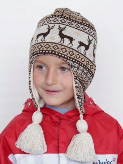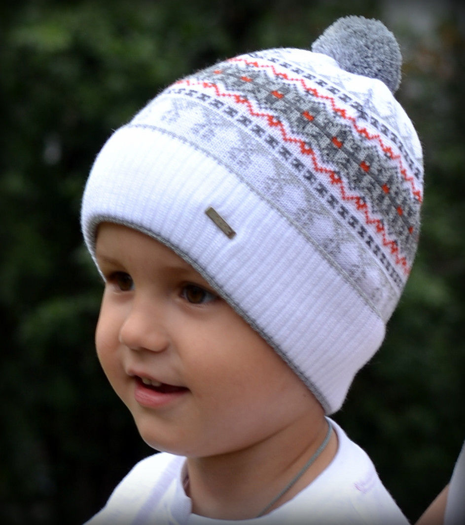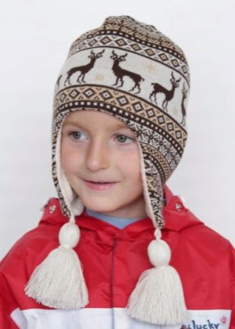 Caps with an ornament. Just like adults, they are deservedly popular, as Norwegian jacquard or lazy patterns are strongly associated with small ones and large ones with happy new year, Christmas trees and gifts.
