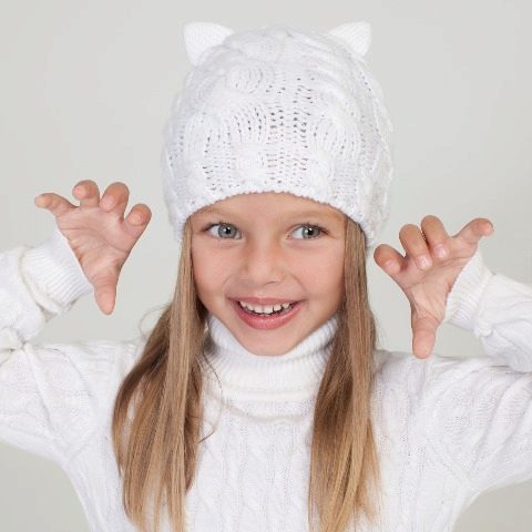 Coolhats like the cartoon about Asterix and Obelix (in the form of a Viking helmet, with horns and braids), in the form of a gladiator's helmet (with a wide strap chin) or a knight (with a rise and fall in case of cold weather "Visor"). Funny hats in the form of animals (giraffes and bees, ants and ladybugs, cats and bunnies). Funny caps with crowns or caps that mimic tails or pigtails.