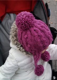 - Today, as some time ago, in the fashion products with pompoms. They are large or small. It looks interesting model with a large volume pompon at the crown. A pair of pompons as ears look very funny.