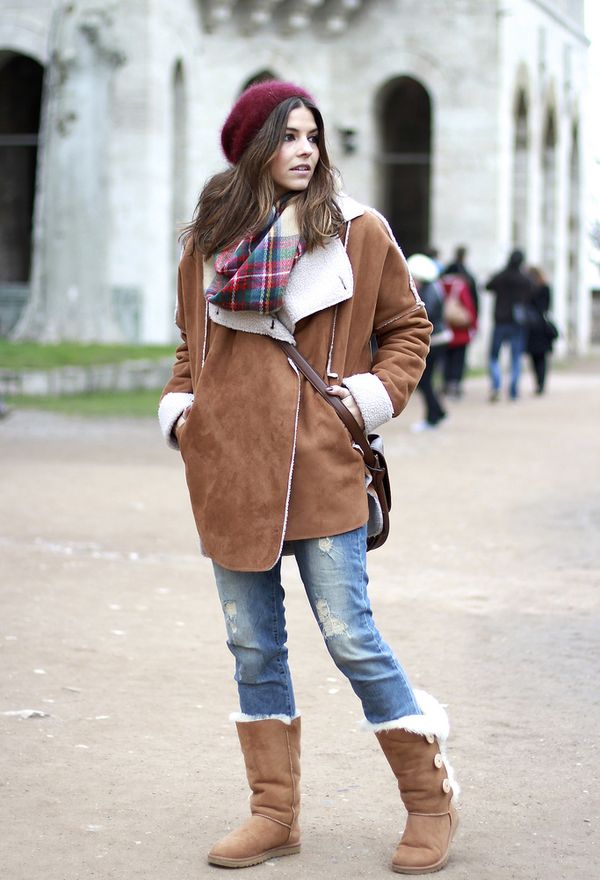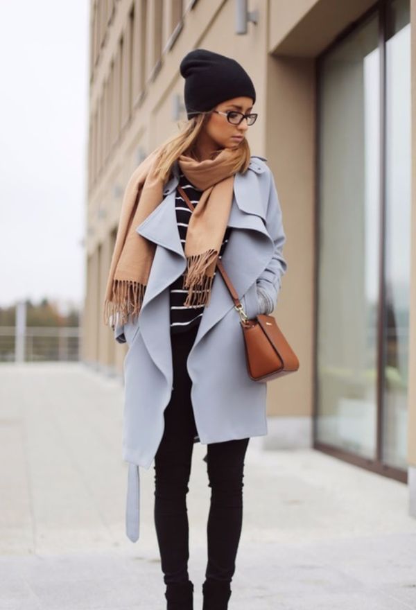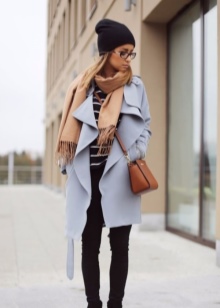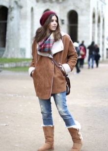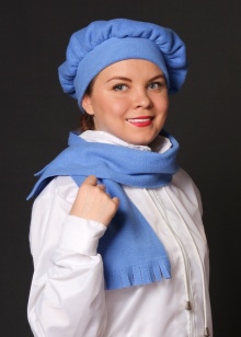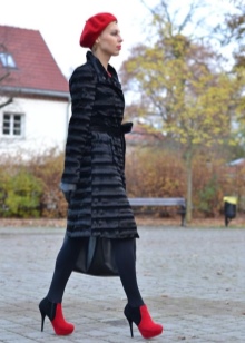 Mysterious female fleece berets will harmoniously look with fitted coats of various lengths. Effectively complement the romantic image of high boots with heels and delicate scarves. You can decorate a feminine outfit with a handbag and an umbrella.