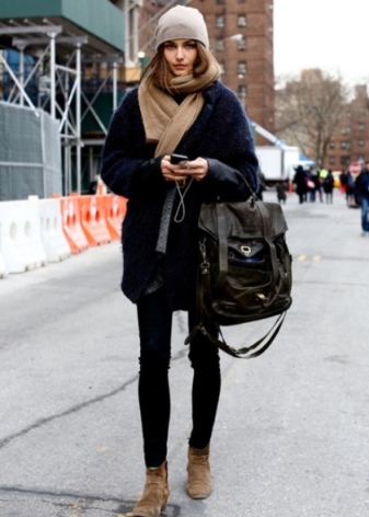 Soft fabric can be combined with any other materials. Particularly attractive and expensive will look models in which such knitwear is found with genuine leather, fur or suede. Often, winter hats are complemented by fur or knitted pompoms at the crown.