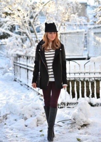 Original hats with ears or a veil will ideally fit into the classic style of clothes, created thanks to fur coats and sheepskin coats, complemented by boots and boots with heels. With this outfit it is recommended to combine various monochrome accessories: bags, clutches and suitcases.