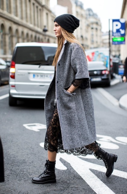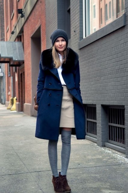 Universal stockings fits perfectly in a fashionable outfit in the style of casual or military. Such an accessory will look harmoniously with straight or fitted coats, plain leggings and flat shoes. A city-style outfit with shoes on a thick, steady heel will look no less stylish.