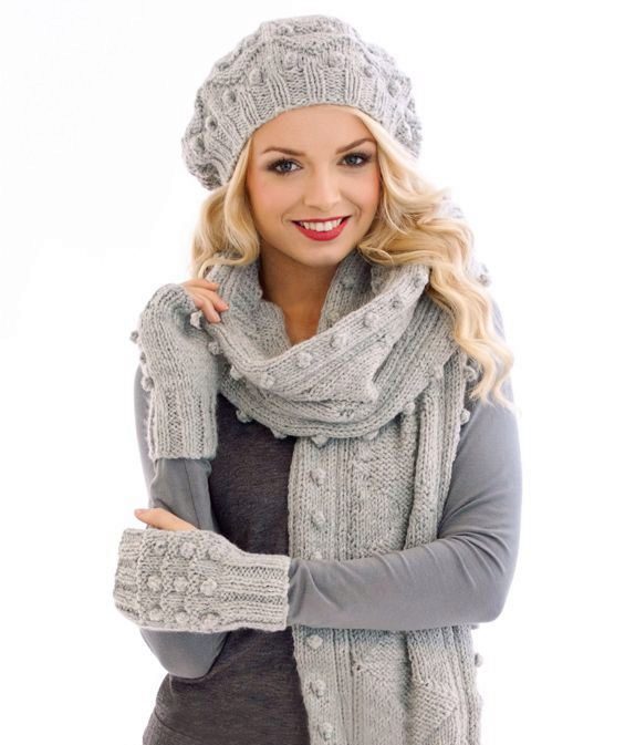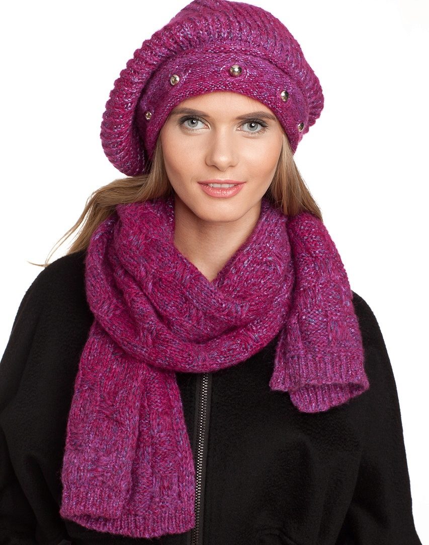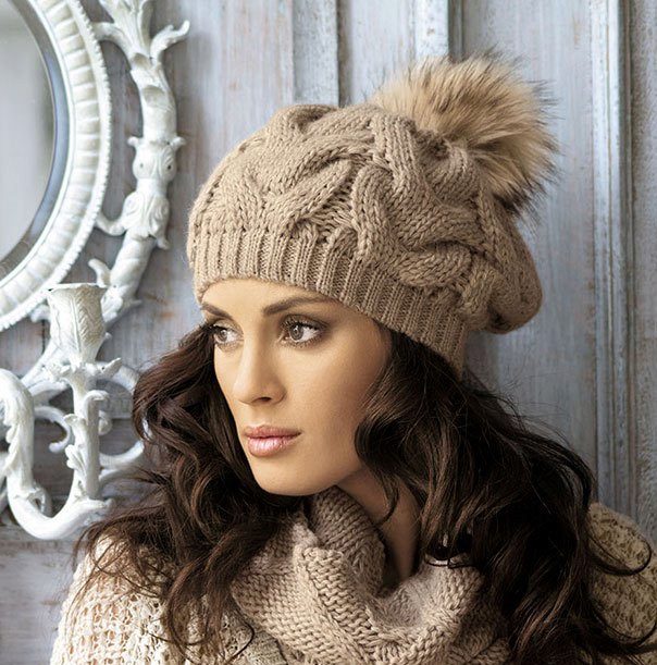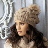 Classic knitted berets do not go out of fashion. They look very nice. Especially interesting are smooth berets without embossed patterns. The beret perfectly complements the elegant classic coat and elongated gloves.Today, dense berets made of coarse wool are popular. Often they can be decorated with pompoms.
