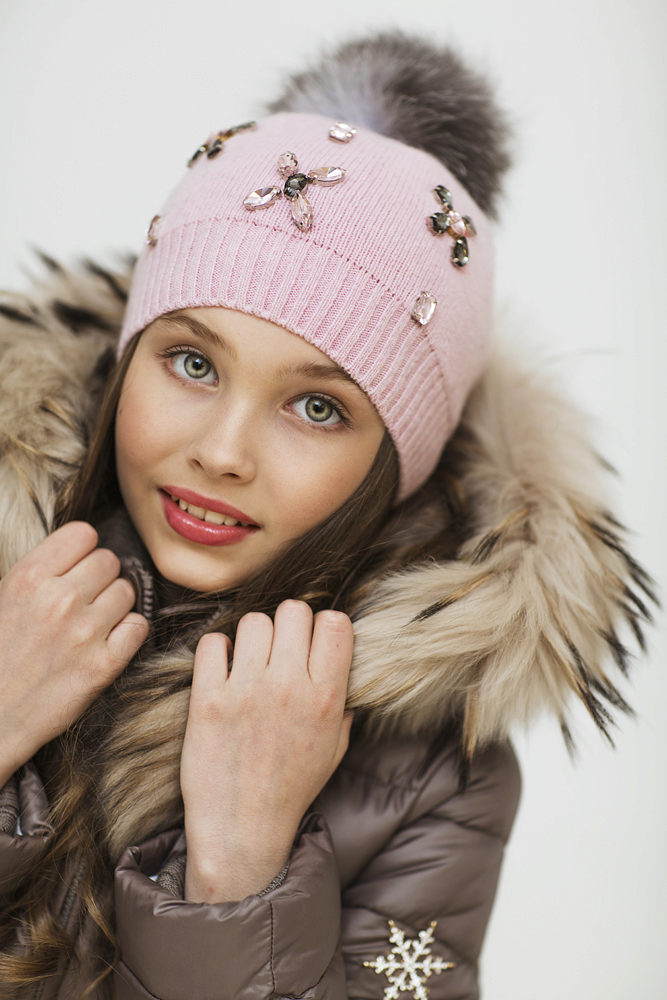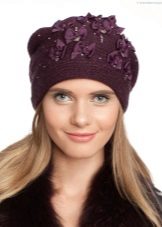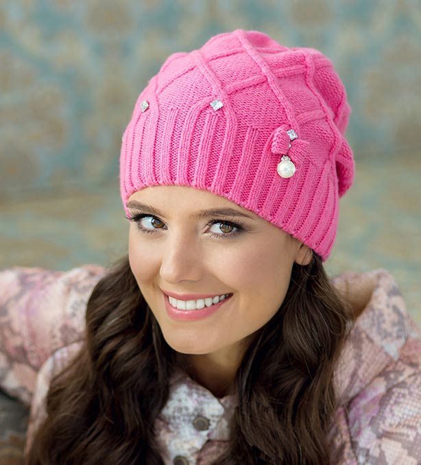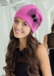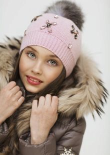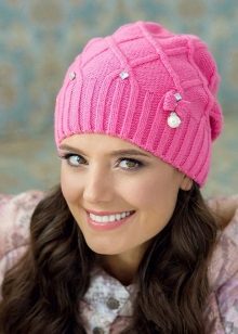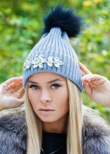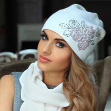 Smooth-knit knitted hats are decorated with a minimum number of decorative elements. Bright, eye-catching decorations, as well as various logos will be out of place here. Tiny bows, tiny brooches with neat rhinestones are allowed.
